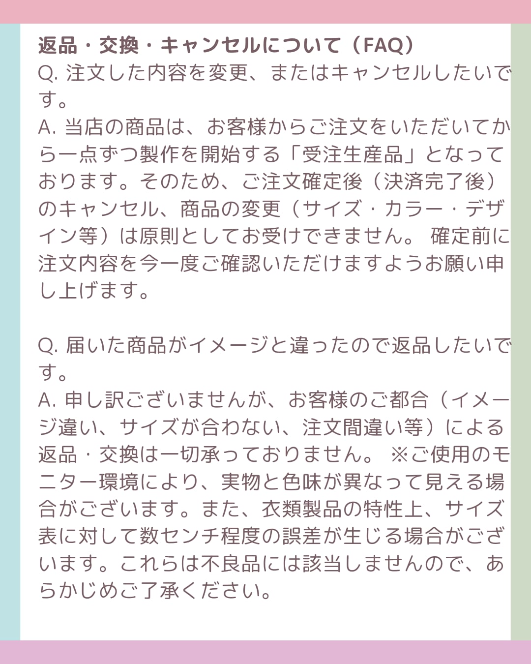 ・受注生産のため、ご注文後に制作し出荷いたします。出荷予定日は商品ページや注文確認メールでご確認ください。発送後のお届け日数は地域により異なります。
